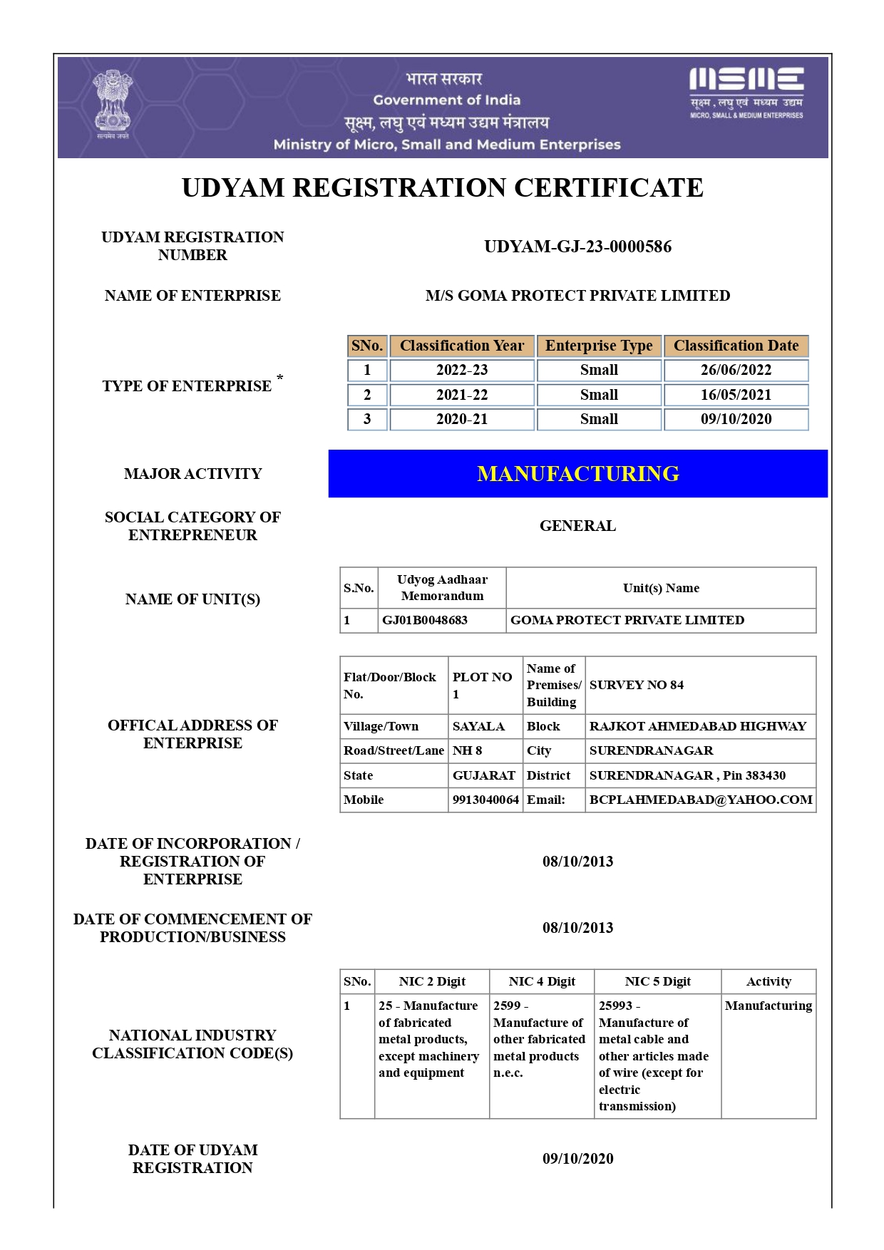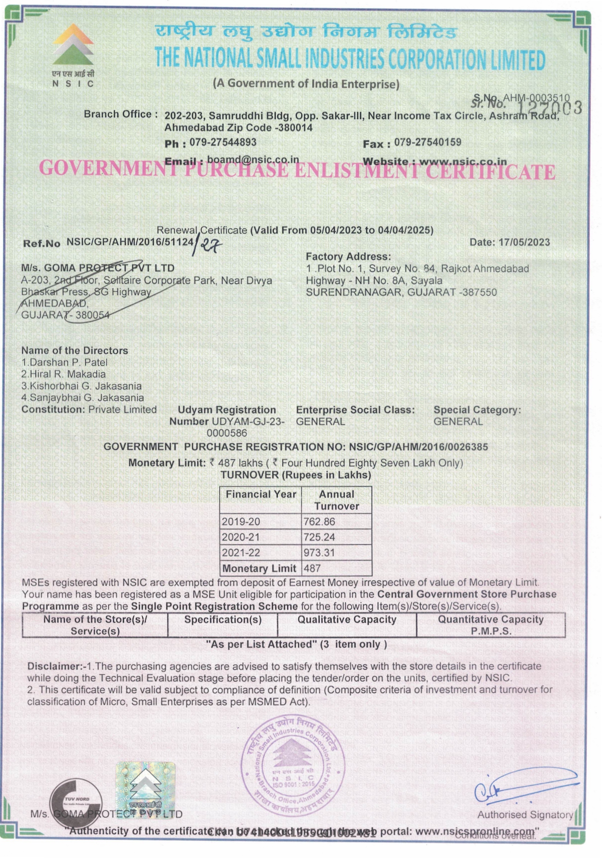 Our Certificate